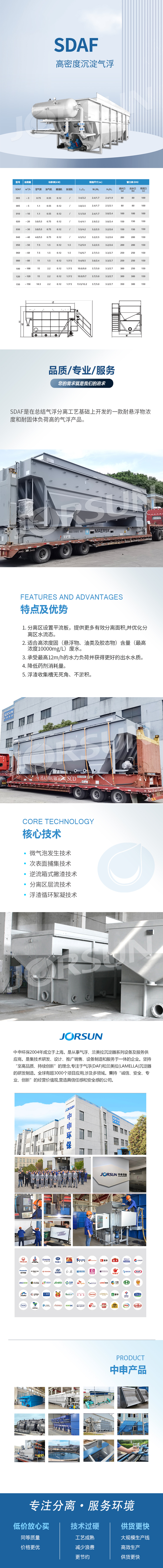 SDAF 是Jorsun公司多年總結(jié)氣浮分離工藝技術(shù)的基礎 上研發(fā)的一款新型氣浮。該工藝將沉淀和氣浮完美結(jié)合 ,實現(xiàn)效果突出的固液分離。