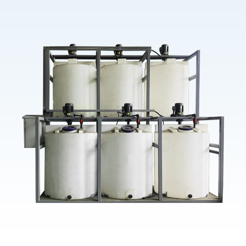 DJY 型是一款集化學(xué)品溶解稀釋、溶液儲存和液位控制于一體的能夠連續(xù)配制連續(xù)投加的加藥裝置。該裝置在溶解槽中注入一定體積水和化學(xué)品(粉劑或溶劑),通過溶解攪拌機(jī)作用下,溶解或稀釋成所需濃度化學(xué)溶液后放流至溶液儲槽,根據(jù)需要用定量式泵浦進(jìn)行投加。